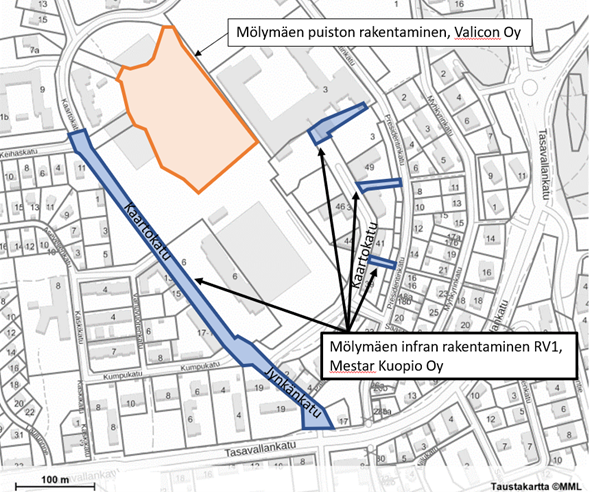 Mestar Kuopio Oy aloittaa Mölymäen infran ensimmäisen rakennusvaiheen. Tämän vuoden aikana on tarkoitus saneerata Kaartokatu ja Jynkänkatu Keihäskadun risteyksestä Tasavallankatuun saakka. Lisäksi rakennetaan Kaartokadun jatke.
