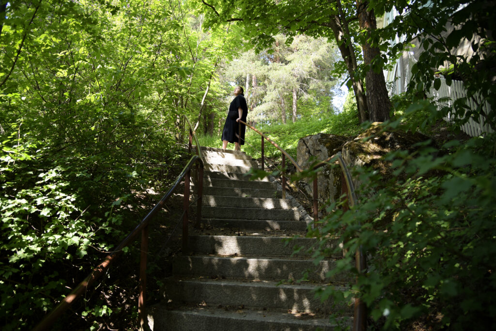 Nousemme heti kivitalojen vierestä portaisiin, jotka näyttävät johdattavan ylös mäelle. Ympäröivä metsä luo ympärille täysin oman maailmansa ja hetkeksi voi unohtaa viereistä kuuluvat liikenteen äänet. Puiden varjot tarjoavat nyt pienen lepotauon porottavalta auringolta. Kalliot ja niiden päällä nouseva Päivärinteen metsä ovat monelle alueella asuneelle merkittäviä paikkoja. Siellä on kuljettu läpi elämän.