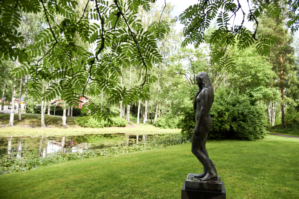 Kävellessämme ympäri Jynkän katuja, kiinnitän jatkuvasti huomiota metsän ja luonnon läheisyyteen. Olen itsekin kasvanut metsien keskellä, joten oloni on jälleen kotoisa. Myös asukkaat pitävät Jynkästä juuri sen takia, että luonto on lähellä. Hyvät lenkkipolut houkuttelevat luontoon liikkumaan. Saavumme pienen lammen äärelle ja sen ympäröivä puistoalue nimeää itsensä Alannepuistoksi. Lammen rannalla komeilee myös patsas, nimeltään Aino. Vietämme hetken aikaa puistossa. Muita ihmisiä ei maanantaisena iltapäivänä juurikaan näy. Kohtaamme satunnaisia ohikulkijoita, muutaman koirankin. On todella rauhallista.