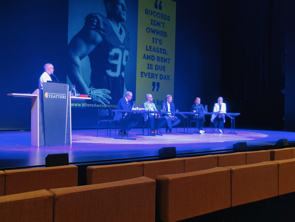 Kuopion kaupunginteatterilla keskusteltiin viime perjantaina tärkeistä aiheista, kun Liiga Alumnin All Star -tapahtuman yhteydessä pidetyssä tulevaisuusseminaarissa johtavana teemana oli vastuullisuus. Alumnin Tukisäätiön ja Kuopion kaupungin järjestämän tapahtuman puheenvuoroissa ja seminaarin päättäneessä paneelikeskustelussa etsittiin vastauksia ja vastuullisuustekoja etenkin lasten ja nuorten liikunnan kehittämiseen ja tukemiseen. Seminaari järjestettiin iltapäivällä ennen illan Alumni All Star -hyväntekeväisyysottelua Kuopion Olvi Areenalla.