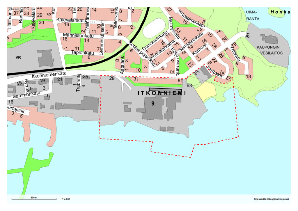 Itkonniemen ranta on ollut teollisuuden käytössä 1900-luvun alusta asti, joten iso osa alueesta on ollut pitkään suljettuna. Asemakaavan tavoitteena on muuttaa alue kerrostalovaltaiseen asuinkäyttöön ja kaavoittaa ranta yleiseksi virkistysalueeksi. Suunnittelutyö on käynnistymässä ja alueelle on tarkoitus laatia useampi ideasuunnitelmavaihtoehto, joissa kuntalaisten näkemyksiä ja toiveita pyritään mahdollisuuksien mukaan ottamaan huomioon.
