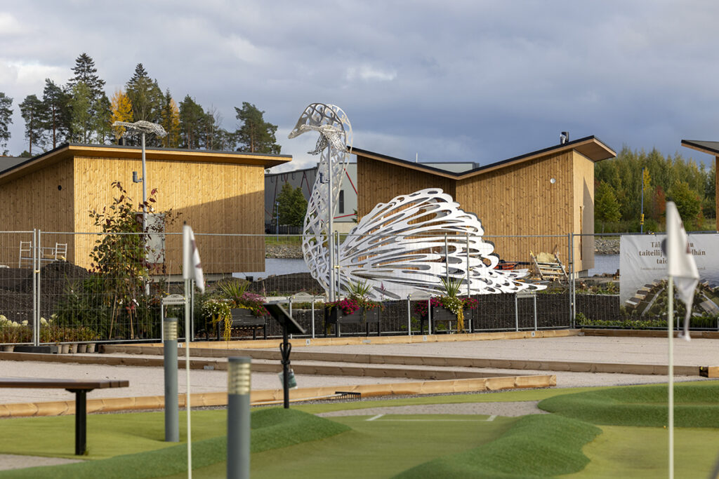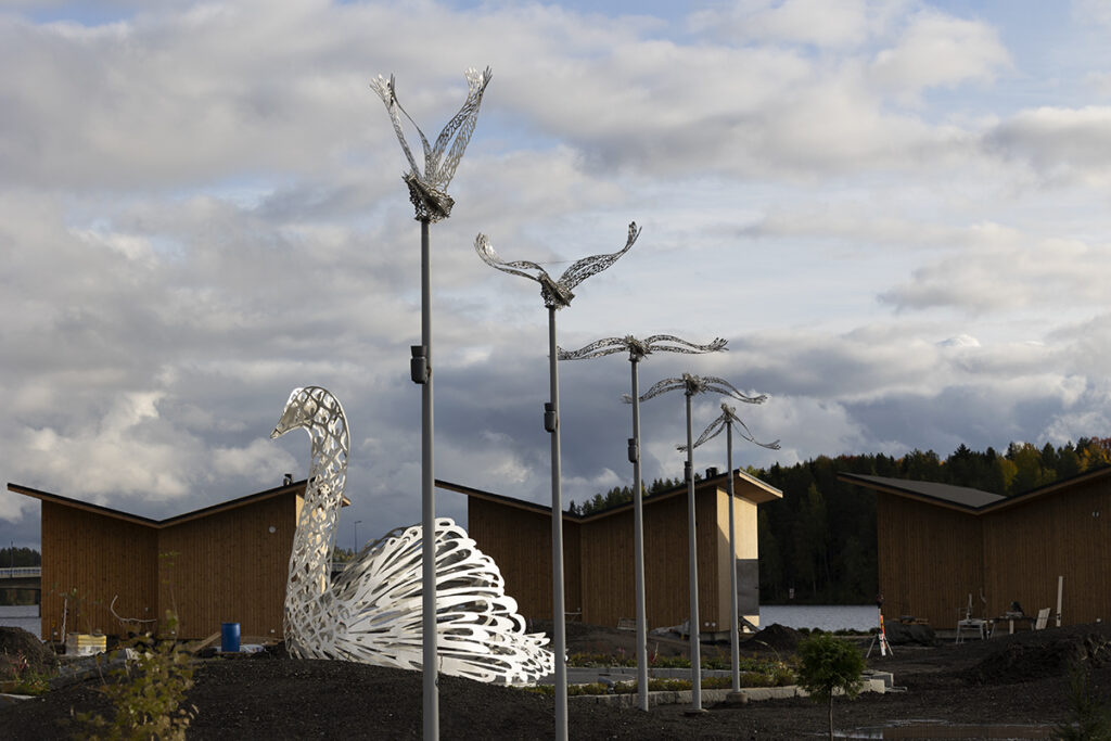 Joulukuussa Kallaveden rannalle avattavan Bella Lake Resortin luksussviittien yhteyteen valmistuvan taidepuiston huomattavin osa on kuuden metrin pääkorkeuteen ulottuva teräksinen Joutsen-veistos, joka “uiskentelee” kahdeksan metriä halkaisijaltaan olevassa vesialtaassa. Teokseen kuuluu myös suurimman joutsenen vieressä sijaitseva viiden pylvään jono, jossa jokaisen pylvään päällä komeilee pienempi joutsen. Joutsenten siipien asennot on suunniteltu niin, että se luo mielikuvan lentoon lähtevästä joutsenesta. Mielikuvaa tullaan tehostamaan pylväisiin asennettujen valojen avulla, jotka on tarkoitus ohjelmoida vuorotellen vaihtuviksi.