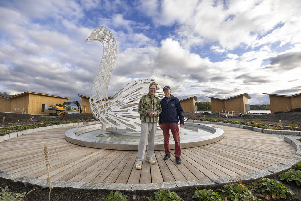 Kuvanveistäjä Pekka Jylhällä riittää myhäiltävää, kun hän seuraa Kuopion Bellanrantaan rakenteilla olevan Joutsen-teoksensa valmistelujen etenemistä.