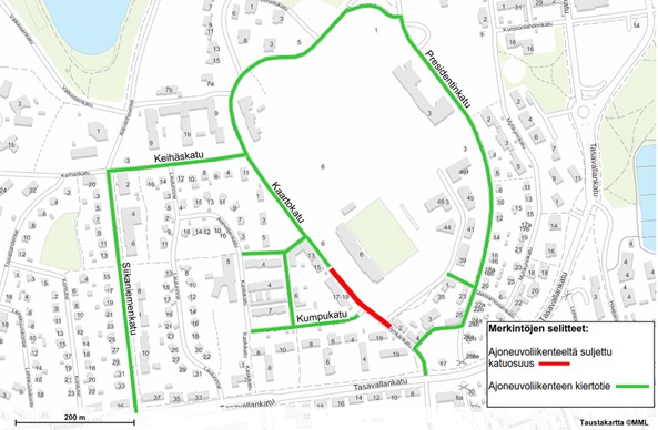 Kaartokatu suljettu ajoneuvoliikenteeltä välillä Jynkänkatu – Kumpukatu
