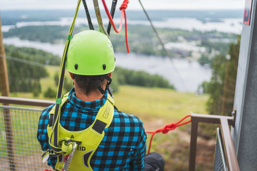 Pulssi kiihtyy ja jännitys kipristelee vatsanpohjassa, kun tähyilee 140 metriä alempana, järven toisella puolen siintävää päätepysäkkiä. Edessä on lähes kilometrin liuku rinteiden huipulta Tahkon keskustaan. Tahkon uusi vaijeriliuku, Tahko Zipline, on Suomen pisin ja vierekkäisten vaijerien ansiosta tuulen tuiverruksesta tukassaan pääsee nauttimaan kimpassa kaverin kanssa. Matkalla maisemia ihaillaan 6–40 metrin korkeudesta jopa 50 km:n tuntivauhdilla.