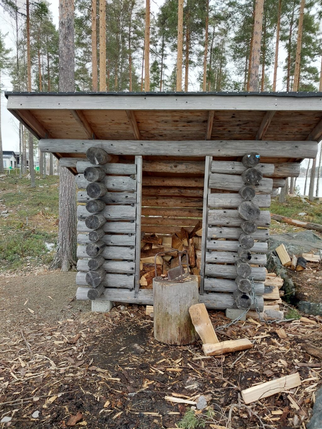 Grillikatos Saaristokaupungissa. Polttopuuhuolto. Vieressä uimaranta. Lähistöllä leikkipuisto.