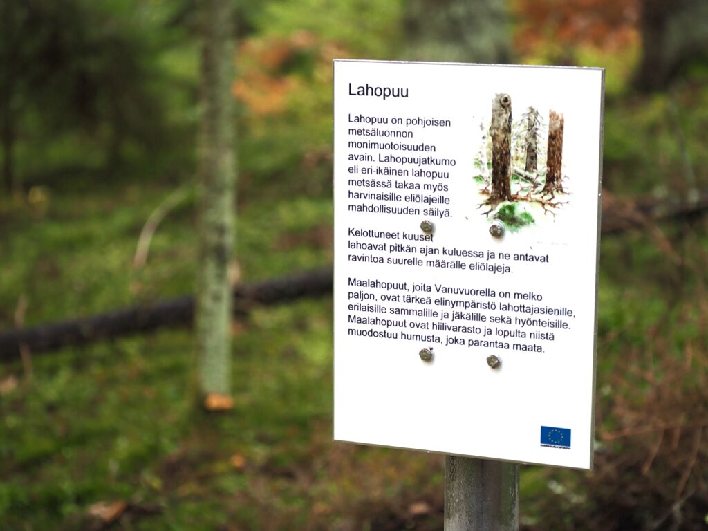 Vanuvuoren alueen rinteet ovat jyrkkiä ja louhikkoisia ja mäet kasvavat järeää mäntyvaltaista metsää. Mäkien välissä notkoissa on rehevämpää kuusivaltaista metsää. Kuusien lisäksi notkoissa kasvaa vanhoja lehtipuita, kuten haapaa, koivua, raitaa ja harmaaleppää. Lisäksi voit havaita kuolleita kuusikeloja, haapapökkelöitä ja kuusi- ja haapamaapuita. Lahopuu on tärkeää metsän elämän kirjolle, sillä metsälajeistamme neljännes, yhteensä noin 5 000 lajia, on riippuvaisia lahopuista.